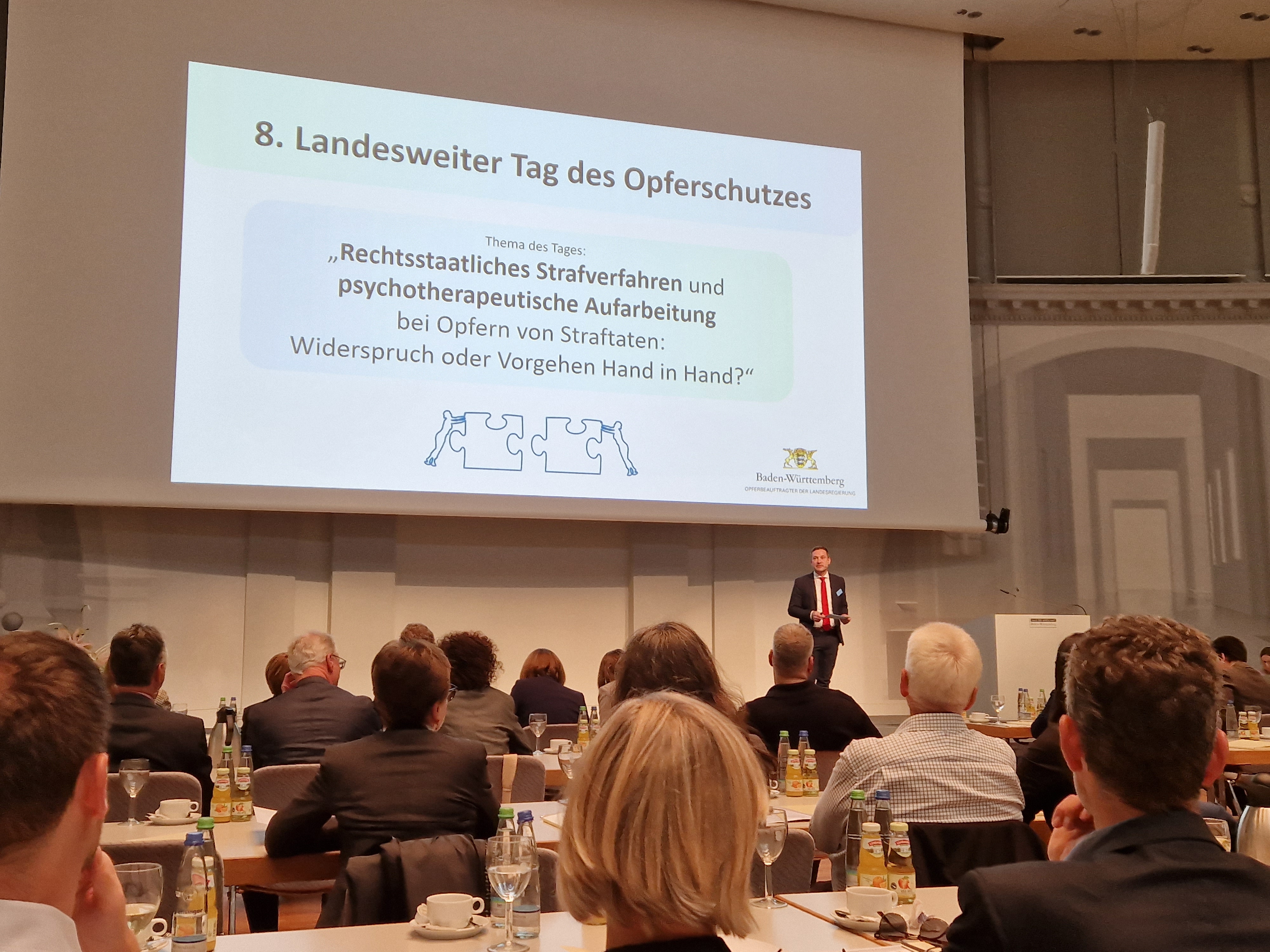 Am gestrigen Montag, 16. Oktober, fand im Haus der Wirtschaft in Stuttgart der 8. Landesweite Tag des Opferschutzes statt. Wir präsentierten uns - neben anderen Akteuren wie dem Seehaus, PräventSozial und dem Weißen Ring - mit einem Infostand. Unsere beiden Vorstände, Volkmar Körner und Christian Ricken, sowie weitere Kolleg*innen aus unseren Einrichtungen Stuttgart, Mannheim und der Geschäftszentrale waren vor Ort und stellten sich den zahlreichen Fragen der Gäste.