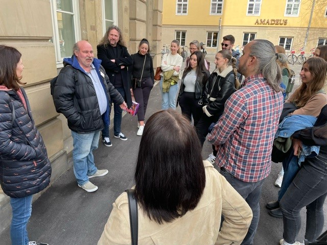 Nach der Begrüßung durch Vorstand Volkmar Körner stellten die Abteilungen der Geschäftszentrale ihre Arbeitsbereiche vor. Vertreter*innen des Gesamtpersonalrats waren ebenfalls vor Ort und informierten die neuen Kolleg*innen über ihre Tätigkeit. Am Nachmittag ging es zu einer alternativen Stadtführung, organisiert vom Stuttgarter Verein Trott-war. Das Besondere daran: Statt zu klassischen Sehenswürdigkeiten, ging es zu sozialen Brennpunkten und Hilfseinrichtungen. Zu den Zwischenstopps gehörte zum Beispiel das Stuttgarter Drogencafé „High Noon“ und die Leonhardskirche – eine sogenannte Vesperkirche. Der Stadtführer und langjährige Trott-war-Verkäufer Thomas Schuler gewährte im Rahmen der Führung offene und ehrliche Einblicke in seine Vergangenheit und die Herausforderungen, mit denen sich sozial benachteiligte Menschen konfrontiert sehen.